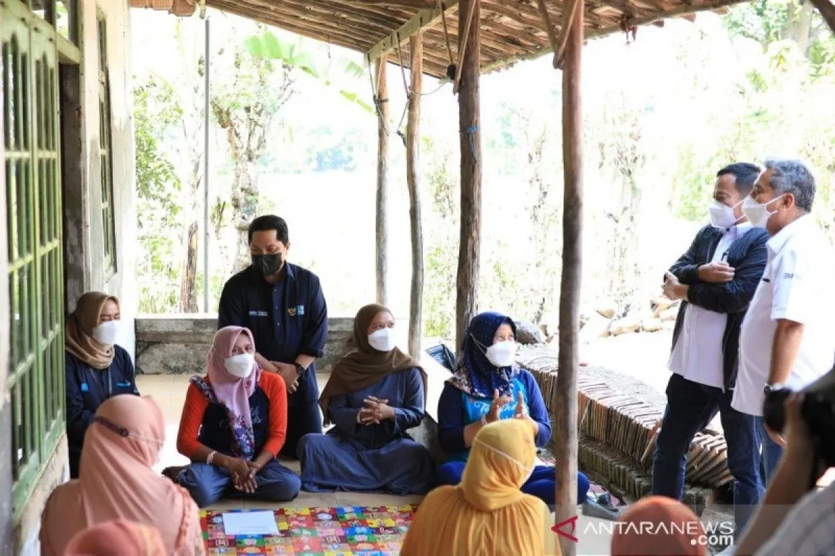 Dalam kunjungan ke kelompok nasabah ultramikro PNM di Desa Guwa Lor, Kabupaten Cirebon, Jawa Barat, Erick menyaksikan kegiatan penyuluhan dan pelatihan nasabah Mekaar (Membina Keluarga Sejahtera) terkait online marketing serta penjualan produk pada marketplace PaDi dan cara membuat display produk yang menarik.