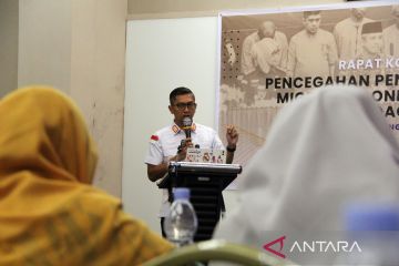 Kepala BP3MI Riau Fanny Wahyu Kurniawan memberikan keterangan jumlah kasus perdagangan orang (TPPO) kepada peserta Rapat Koordinator Terbatas (Rakortas) pencegahan PMI ilegal dan TPPO di Dumai, Riau, Kamis (11/9/2025). ANTARA/Aswaddy Hamid