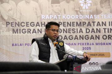 Kepala BP3MI Riau Fanny Wahyu Kurniawan memberikan keterangan jumlah kasus perdagangan orang (TPPO) kepada peserta Rapat Koordinator Terbatas (Rakortas) pencegahan PMI ilegal dan TPPO di Dumai, Riau, Kamis (11/9/2025). Dalam rakor yang dihadiri oleh perwakilan instansi pemerintah pusat dan daerah tersebut disampaikan juga jumlah kasus TPPO di Riau hingga September sebanyak 127 kasus dengan jumlah korban sebanyak 599 orang yang berhasil diselamatkan dan tiga daerah tujuan pemulangan terbanyak yaitu Sumut, Jatim serta Aceh. ANTARA/Aswaddy Hamid